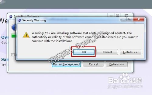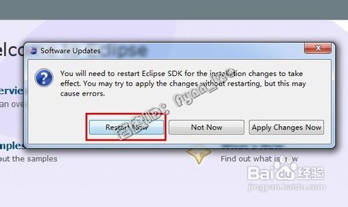 6.之后,彈出“正在安裝”窗體,用戶等待片刻后,在彈出的“Security Warning”窗體中點擊“OK”按鈕,之后在彈出的又一窗體“Software Updates”中點擊“Restart Now”按鈕完成語言包的安裝并重啟eclipse。