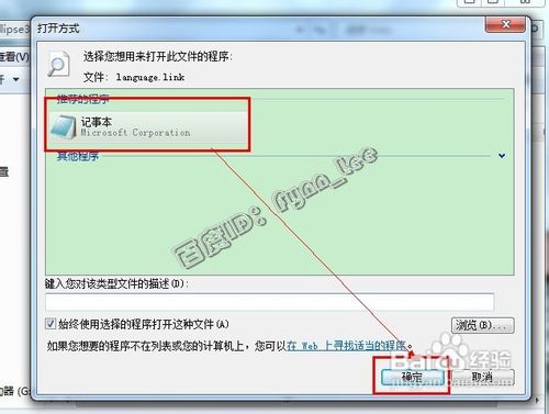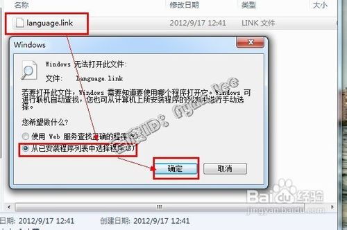 5.修改好文件名后,打開此文件,點擊“從已安裝程序列表選擇”、“確定”,選擇以記事本方式打開。