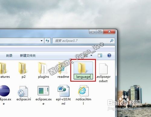 3.進入eclipse安裝目錄(例如桌面),新建“language”文件夾(與eclipse.exe在同文件夾下)。將下載的語言包解壓后會有eclipse文件夾,eclipse文件夾下有兩個文件夾“features”、“plugins”,若沒有eclip文件夾,則新建后將這兩個文件夾放在eclipse文件夾內,然后將eclipse文件夾剪切到新建的“language”文件夾下。