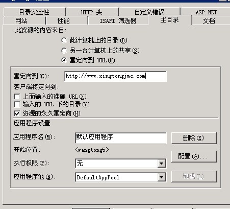 十:在我們剛建的站,鼠標右鍵,選擇屬性,會出現一個出口,選擇主目錄,在選擇重定向到填www.***.com