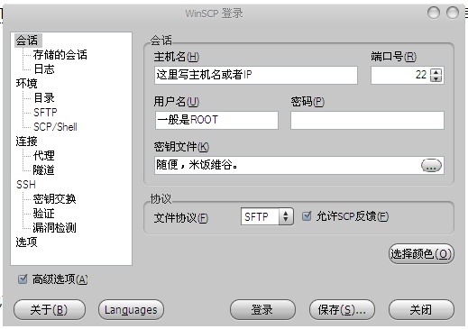 Putty是萬能的但是用慣了鼠標的我們——菜鳥可能并不太習慣SSH代碼這時候我們可是使用WinSCP這貨和FTP很像我們可以用它來簡單的管理VPS內的文件并且不需要熟記那些無聊SSH代碼所以WinSCP也是很有用的!