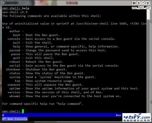3、輸入help命令,可以列出XEN-SHELL的全部功能。