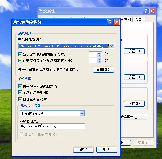 右鍵“我的電腦” -> “屬性”-> “高級”選項卡 -> 單擊“啟動和故障恢復”中的“設置”按鈕: