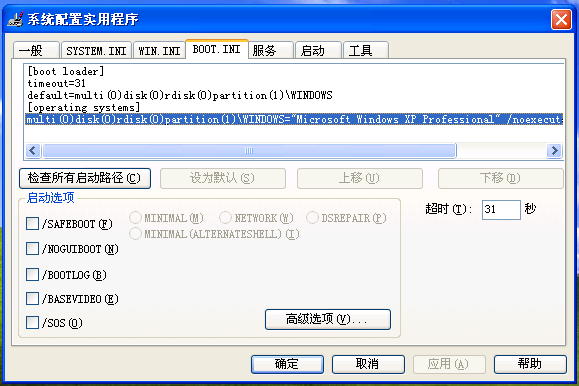 在Windows XP下如何找到并編輯 Boot.ini 文件:
