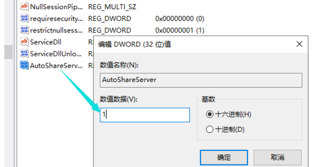如果允許網絡共享,雙擊打開AutoShareServer,把數值數據修改1,點擊確定。