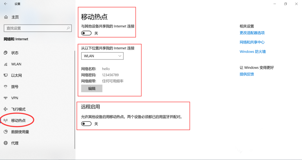 注意:如果你的筆記本電腦中沒有“移動熱點”選項,建議更新Windows系統;當然了,如果筆記本電腦中沒有無線網卡,則無法開啟熱點,建議配置一塊無線網卡。