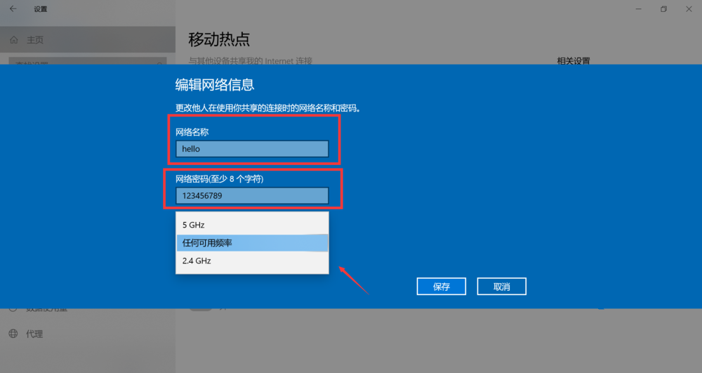 如圖,選擇共享位置,點擊【編輯】,設置共享WLAN的網絡名稱、密碼和頻率,頻率無特殊需求,最后進行保存,