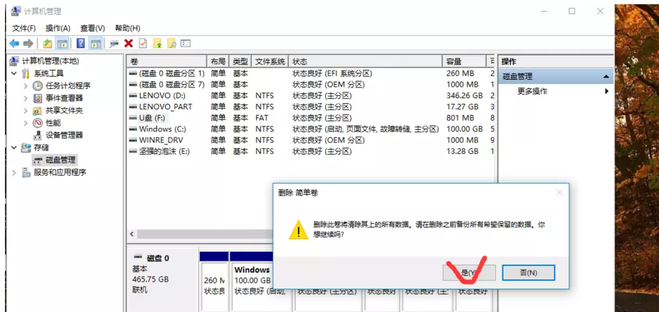 出現提示,點擊確定,即會刪除該分區的所有信息,如此一來,多出來的這個分區就被刪除了,