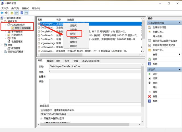 2、打開計算機管理窗口,如圖,在左側點擊【系統工具】——【任務計劃程序】——【任務計劃程序庫】,然后將右側面板關閉所有的狀態信息。