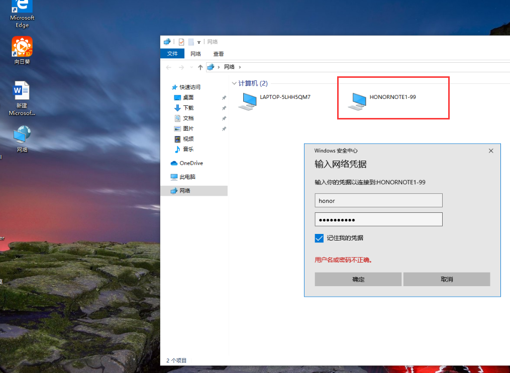 6、鼠標右擊桌面上的網絡圖標,進入以下界面,找到華為手機設備,雙擊設備,彈出對話框,輸入剛才設置的用戶名和密碼,點擊確定,