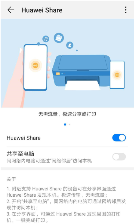 Huawei Share,這是華為研發提供的一項文件傳輸技術,它可以完美取代藍牙傳輸方式,在手機和手機、手機和電腦之間快速傳輸圖片、視頻以及文檔。今天小編就來介紹使用Huawei Share在華為手機和電腦之間進行文件互傳,詳情請看文章說明。