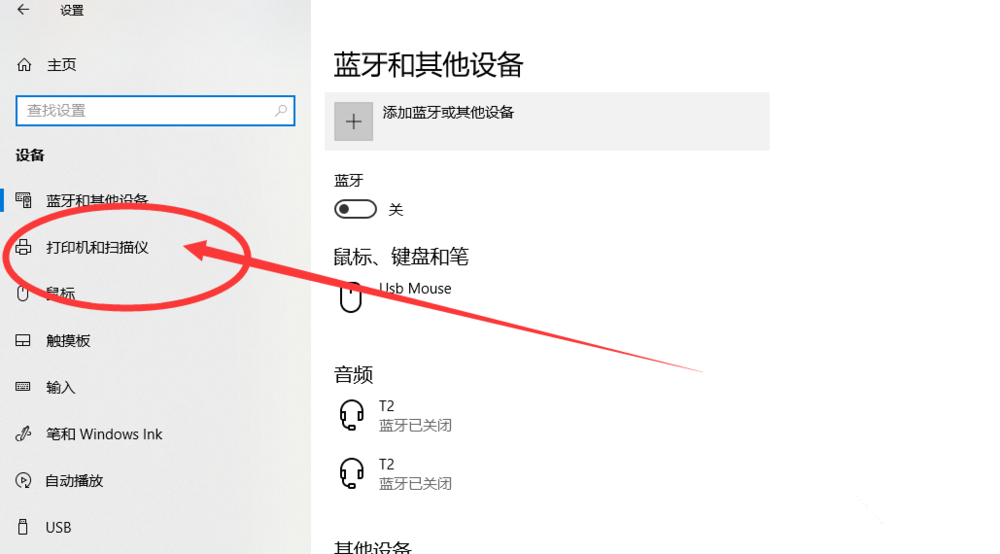 在左側窗口點擊【設備】——【打印機和掃描儀】,接著點擊【添加打印機或掃描儀】,如圖,