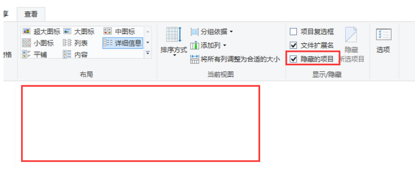 如圖,文件已經被隱藏了,無論是否點擊勾選【隱藏的項目】,都不會顯示文件,
