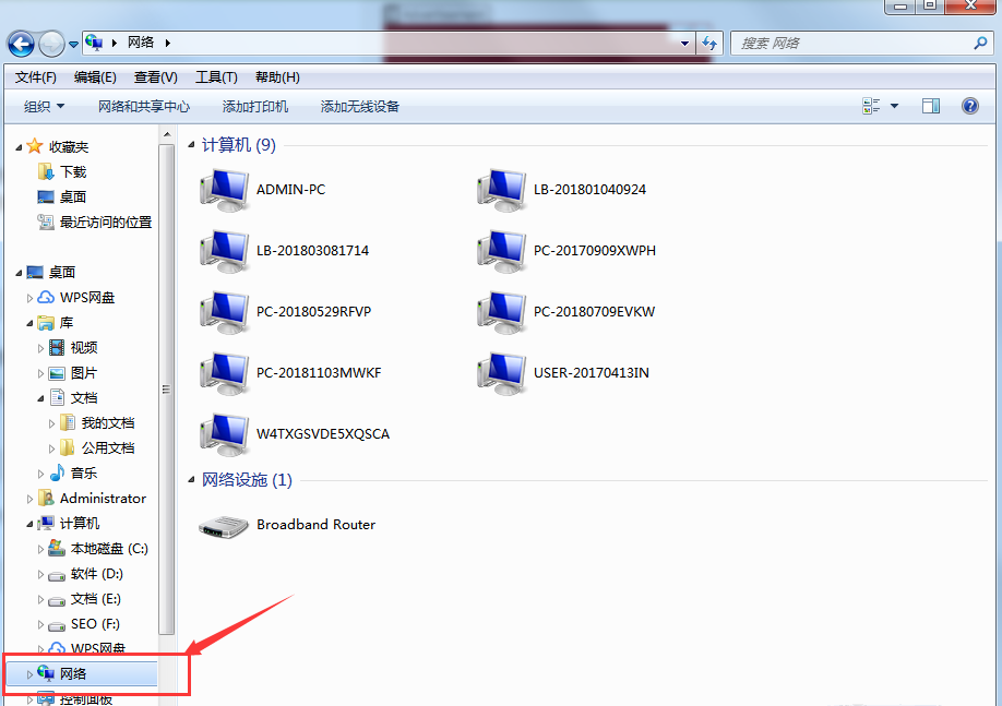 如圖,在左側標簽欄中點擊【網絡】,即可顯示同一局域網中的所有計算機,