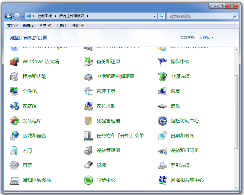 1、點擊打開控制面板,選擇【查看方式】為大圖標,找到并點擊【網絡和共享中心】,如圖,