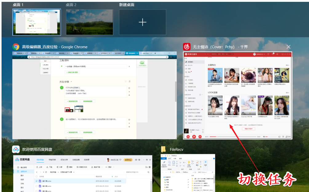 在任務欄中點擊如圖圖標,然后按快捷鍵【Win+Tab】,進入視圖窗口,
