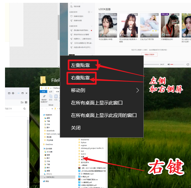 選擇某一任務窗口,鼠標右擊,可以進行左側貼靠、右側貼靠,