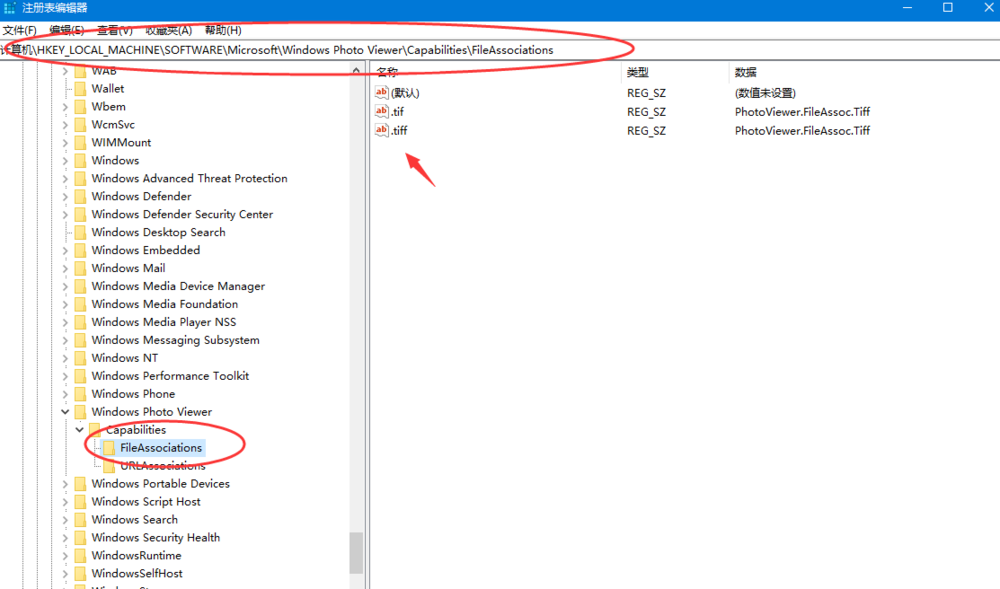 打開注冊表,依次點擊【HKEY_LOCAL_MACHINE/SOFTWARE/Microsoft/Windows Photo Viewer/Capabilities/FileAssociations】,