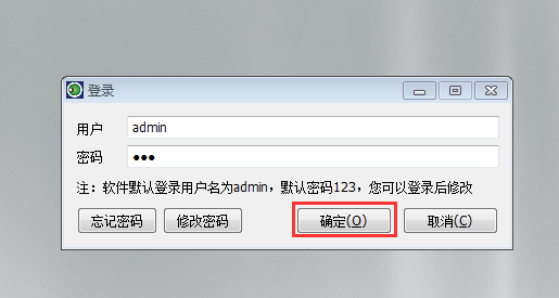 使用快捷鍵【alt+f2】喚出登錄窗口,初始賬號為admin,密碼是123,點擊確定,登錄軟件,