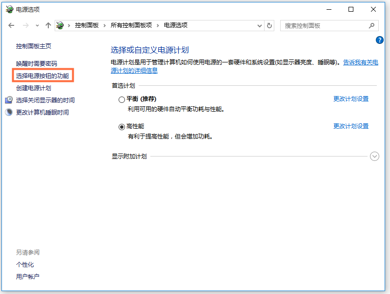 3、進入電源選項界面,點擊【選擇電源按鈕的功能】,