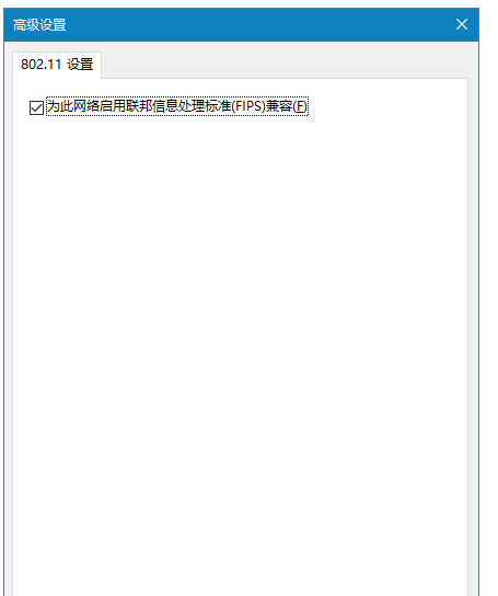 進入高級設置界面,勾選【為次網絡啟用聯邦信息處理標準(FIPS)兼容】,點擊確定,