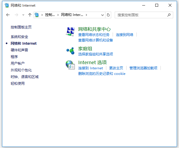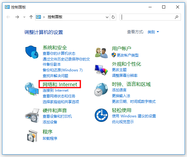 打開控制面板,點(diǎn)擊【網(wǎng)絡(luò)和Internet】選項(xiàng),