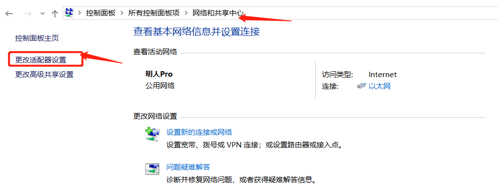 進(jìn)入如下界面,點(diǎn)擊【更改適配器設(shè)置】,