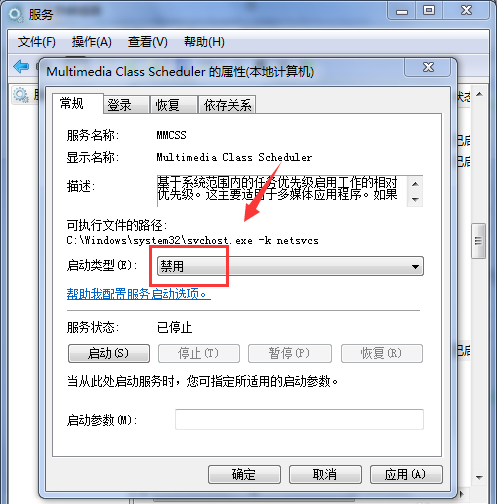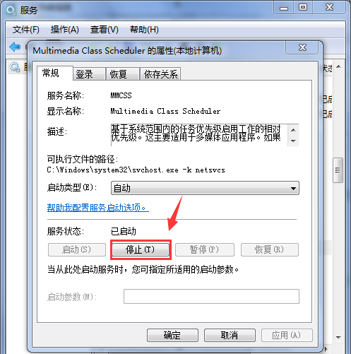 彈出窗口,點擊【常規】——【停止】,停止MMCSS服務,