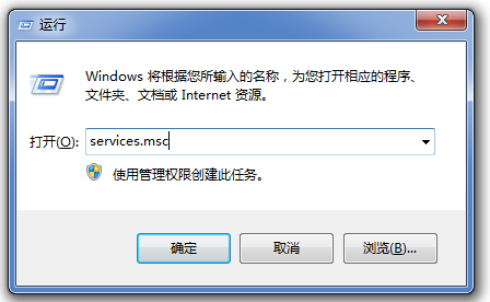按住快捷鍵【Win+R】,打開運行窗口,輸入services.msc,點擊確定,