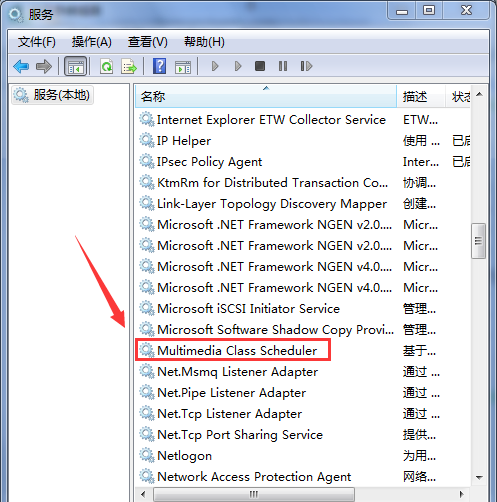 進入服務界面,找到Multimedia Class Scheduler并雙擊,如圖,