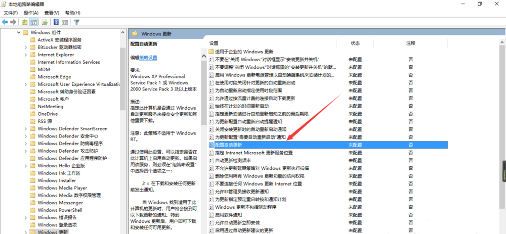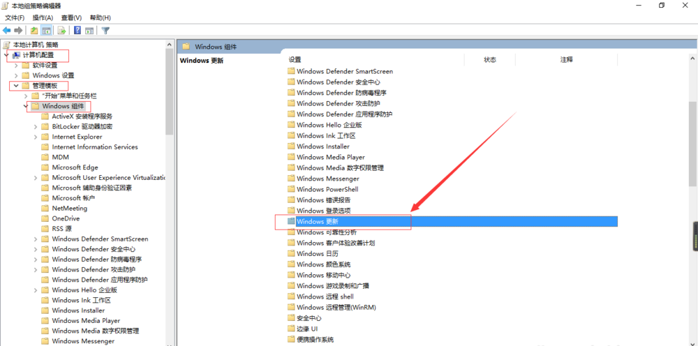 如圖,依次點擊【計算機配置】——【管理模板】——【Windows組件】——【Windows更新】,