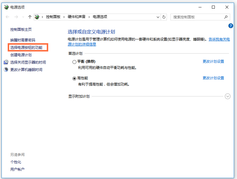 打開電源選項界面,在左側點擊【選擇電源按鈕的功能】,