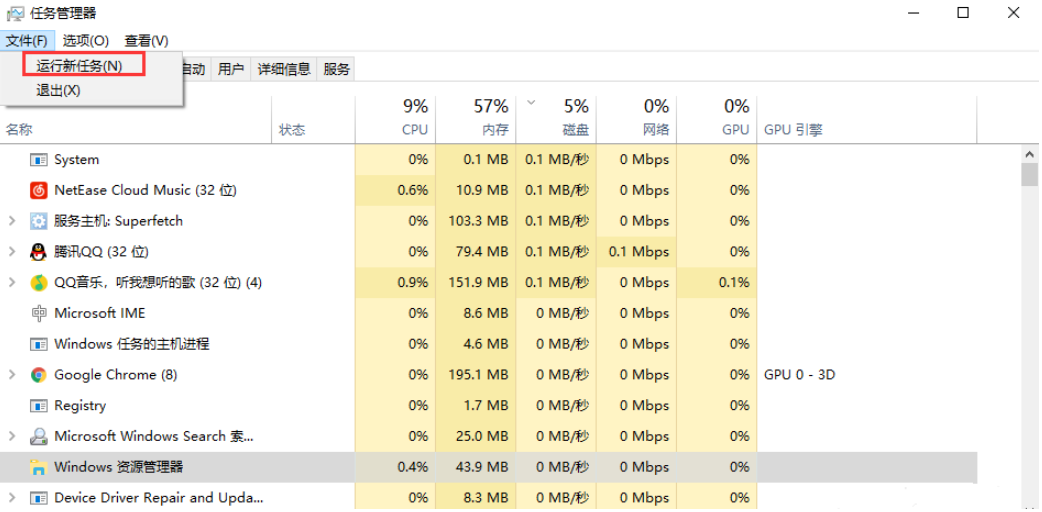 打開任務管理器,點擊上方的【文件】選項,