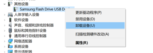 找到之后,右鍵點擊【卸載設備】,然后拔下U盤,重新插入就可成功識別了。