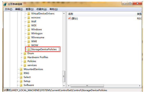 進入注冊表編輯器界面,按序打開“HKEY_LOCAL_MACHINE-SYSTEM-CurrentControlSet-Control”,在Control文件夾中找到StorageDevicePolicies選項,