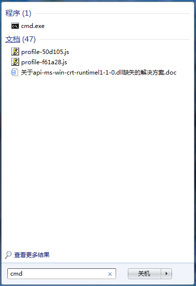 單機開始按鈕,在搜索框中輸入【cmd】,按回車鍵,打開命令提示符,
