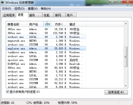 在窗口中點擊“進程”選項卡,在列表中找到“explorer.exe”選項,點擊它,