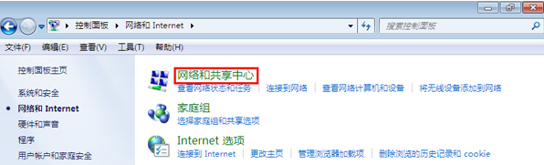 進入新的界面,點擊“網(wǎng)絡和共享中心”選項,