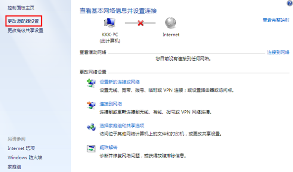 彈出新的界面,在左側(cè)欄中點擊“更改適配器設置”選項,