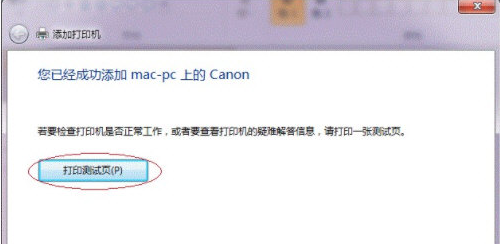 4、 至此,打印機已添加完畢,如有需要用戶可點擊【打印測試頁】,測試一下打機是否能正常工作,也可以直接點擊【完成】退出此窗口成功添加后,在【控制面板】的【設備和打印機】窗口中,可以看到新添加的打印機。