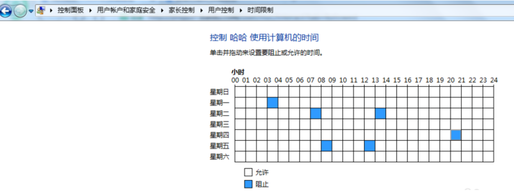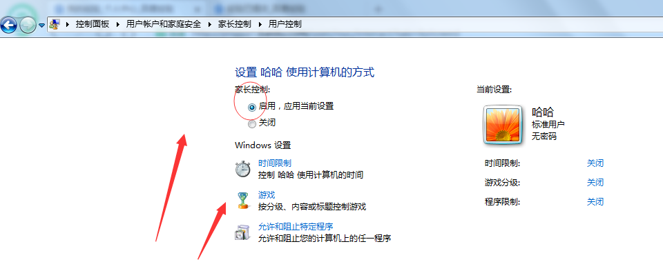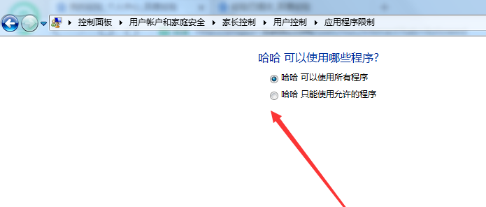 然后選擇一個需要進行控制的賬號,對其使用電腦的時間和程序進行設(shè)置,