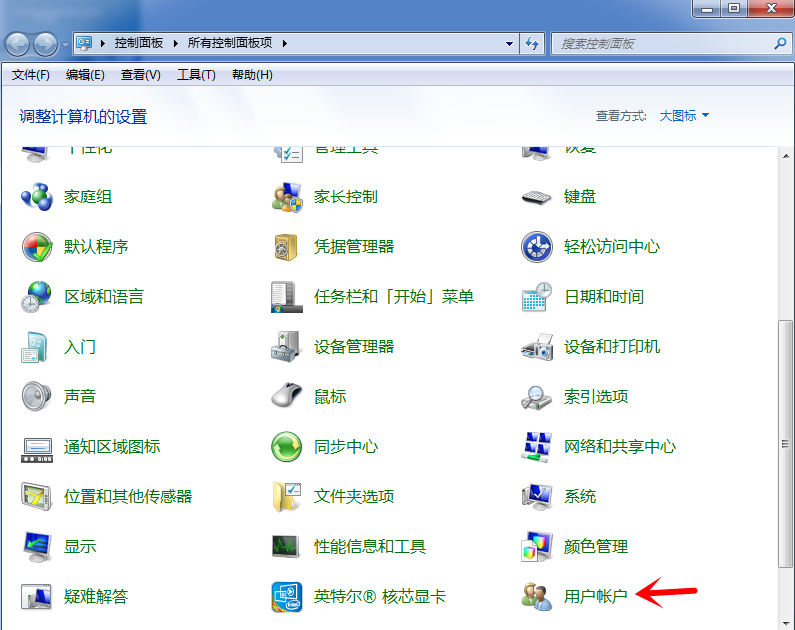 進入控制面板界面,點擊“用戶賬戶”,對電腦上的賬號進行管理,