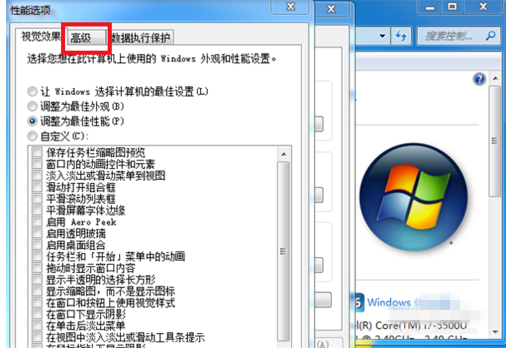 進入系統屬性界面,點擊上方的【高級】,接著點擊【性能】下方的【設置】選項。