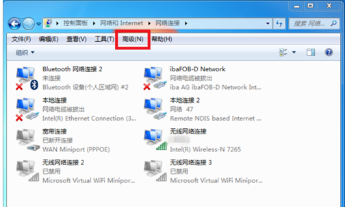 進入網絡連接界面,在上方的菜單欄中點擊【高級】選項。