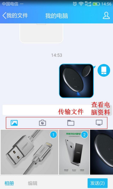之后就會(huì)進(jìn)入文件傳輸頁面,可直接傳輸圖片、傳輸其他類型文件,授權(quán)后還可以利用手機(jī)直接查看電腦上的文件資料。