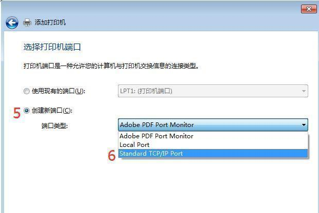 選擇添加打印機——添加本地打印機——創建新端口——選擇standard tcp/ip port——下一步。
