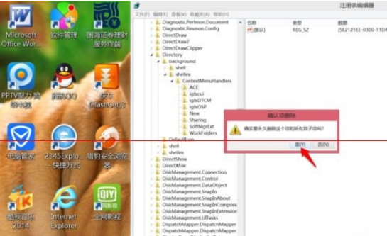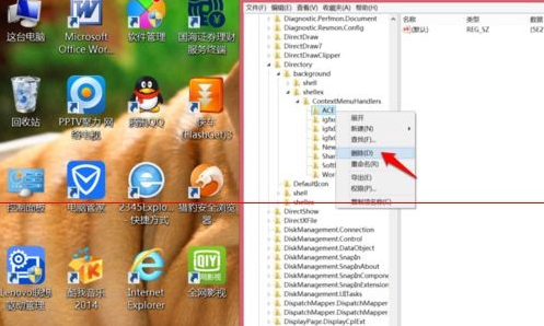 打開注冊表后,依次找到注冊表:HKEY_CLASSES_ROOT/Directory/Background/shellex/ContextMenuHandlers。