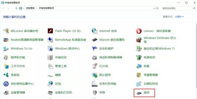 第一步:進(jìn)入控制面板,找到“鼠標(biāo)”,如圖: