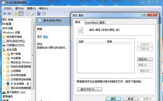 我們來開機啟用這個腳本文件,在系統左下角找到開始-運行里輸入gpedit.msc,也就是打開組策略的意思,然后依次打開本地計算機策略-計算機配置-windows設置-腳本(啟動/關機),然后添加啟動項,把我們剛才新建里的新建.bat文件加入到啟動項即可。