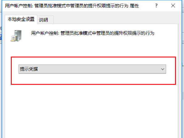 進去之后,將默認的不提示直接提升改為提示憑據,如下圖所示: